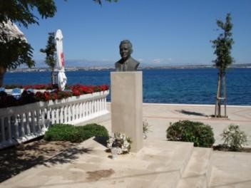 In the photo on the left is Ivo Mašina’s tomb by the Franciscan monastery, and in the photo on the right is the monument to Ivo Mašina in his native Preko on the island of Ugljan.