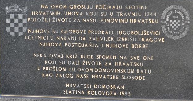 Foto radioslatina.hr Na poticaj i zalaganje Društva “Hrvatski domobran” Slatina, na Slatinskom groblju podignut je spomenik “Križ mučenik”, kao spomen na Krvavi slatinski Uskrs