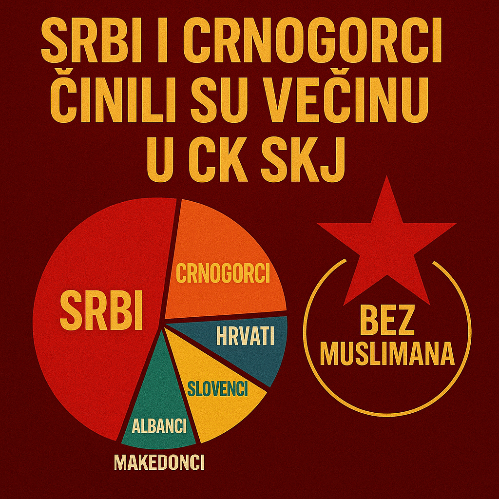 Od predviđena 24 člana Predsjedništva CK SKJ, nije bilo ni jednog Muslimana, iako ih je tada u Bosni i Hercegovini živjelo više od milijun i pol, čineći 40% ukupnog pučanstva BiH! U partijskom članstvu Saveza komunista Bosne i Hercegovine (SK BiH) bili su svedeni na samo 34%.