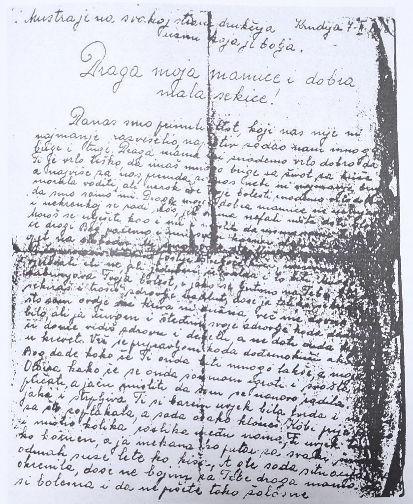 Puno pozdrava i pusu Tebi draga mamice i Olgice od tate i Mire.