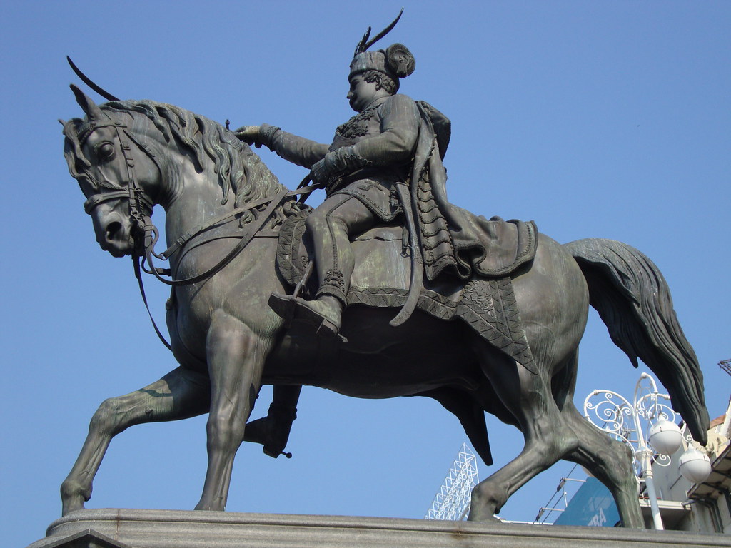 Spomenik banu Josipu Jelačiću, rad bečkog kipara Antona Dominika Fernkorna, svečano je postavljen na na glavnom zagrebačkom trgu 16. prosinca 1866. godine. Dogodilo se to samo sedam godina nakon banove smrti. Financiran je isključivo prilozima hrvatskog naroda, a izrađen u ljevaonici kovača Franza Gassera u Beču. Ban Jelačić prikazan je kao vojskovođa na konju, s uzdignutom desnom rukom i isukanim mačem, okrenut prema sjeveru, prema Mađarskoj, što je imalo snažnu političku poruku u svjetlu njegova otpora mađarskom hegemonizmu u sklopu Habsburške Monarhije.